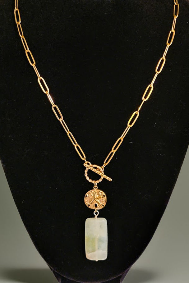 Bring the spirit of the sea into your style with our Coastal Charm Toggle Necklaces. Each necklace features a bold gold paperclip chain with a textured toggle accent in front, paired with a fixed charm that tells its own coastal story. From luminous pearls to earthy gemstones and golden sand dollars, every piece feels like a treasure discovered at the tide’s edge.